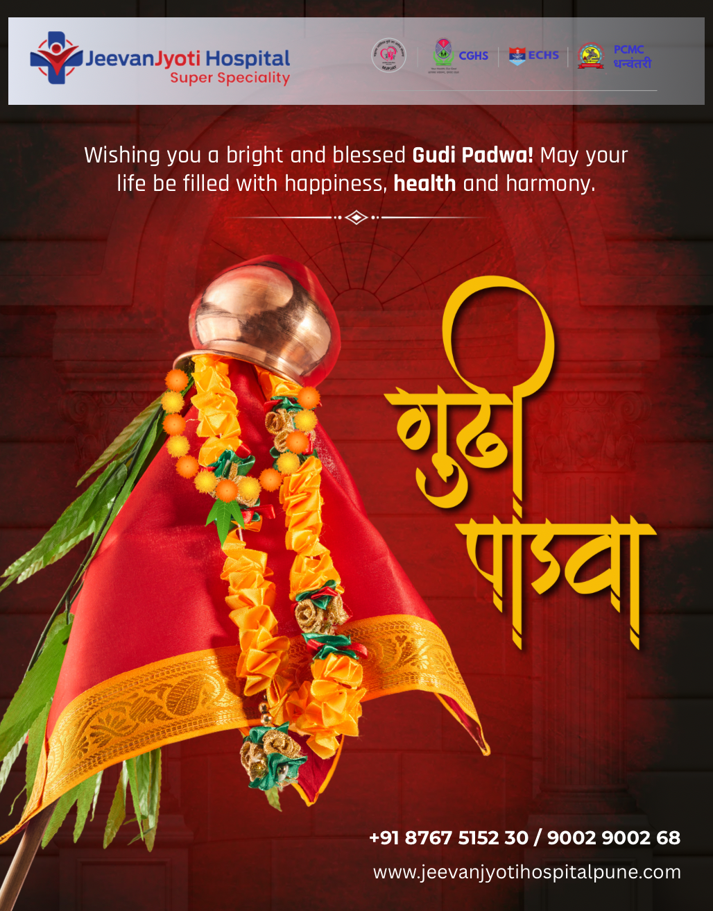 New Year. New Beginning. On this auspicious day of new beginnings, may your life be filled with health, happiness & prosperity. Just as the Gudi symbolizes victory and joy, let’s welcome this new year with strength, wellness & hope. 🌿 Wishing you and your family a year of good health and success. 🌿 #GudiPadwa2026 #NewBeginnings #JeevanJyotiHospital #CelebrateLife #HealthAndHappiness #PimpleSaudagar